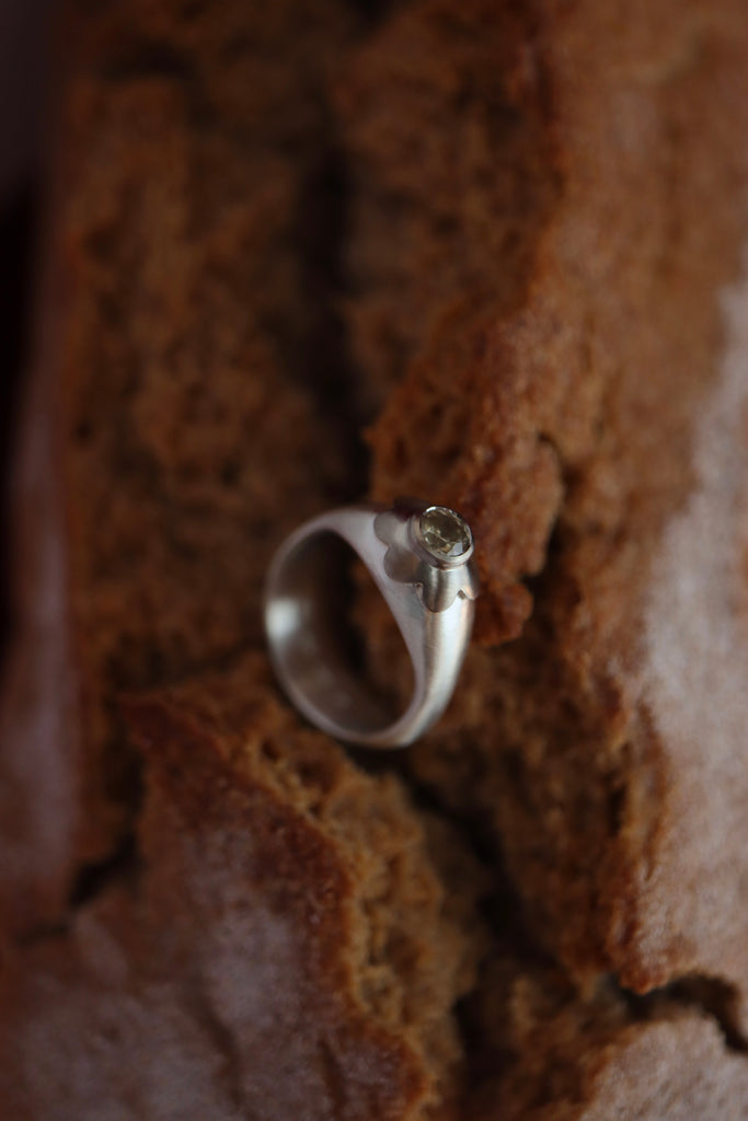 In oro Fairtrade 18k, argento AgAIN silver 935 e delle gemme formatesi assieme alla crosta terreste