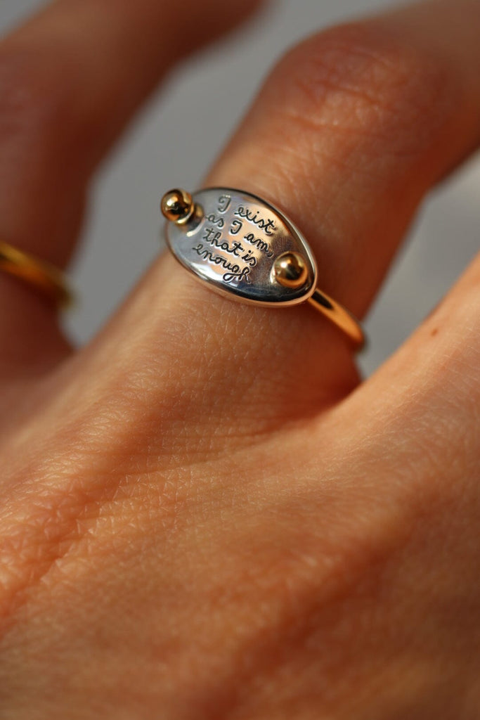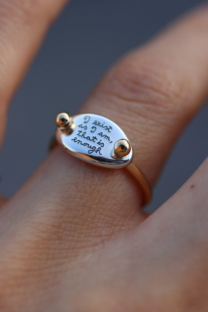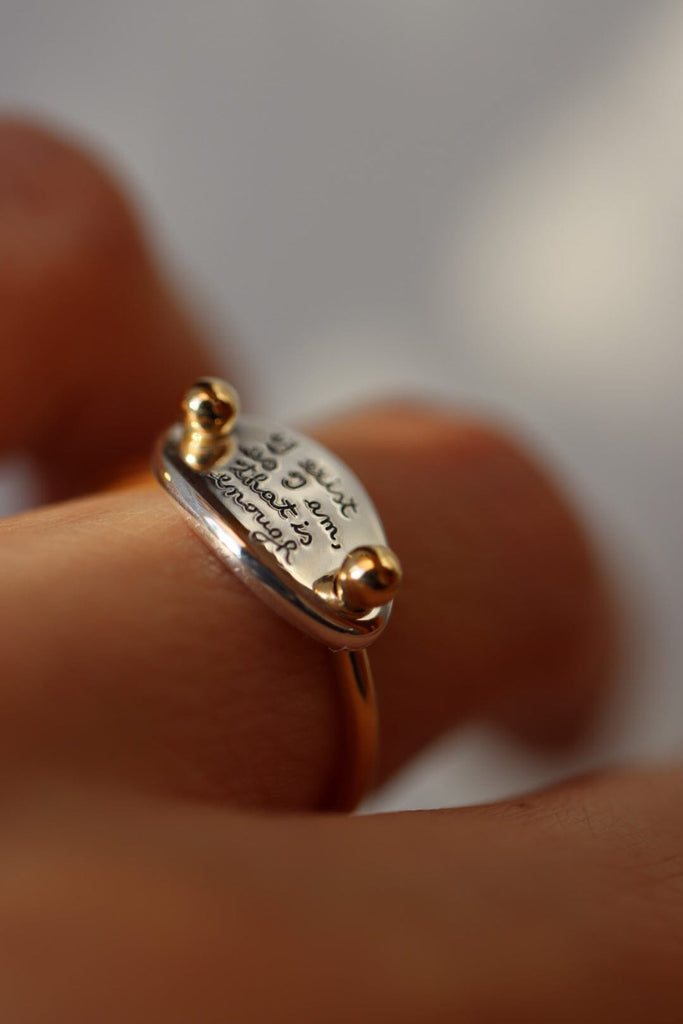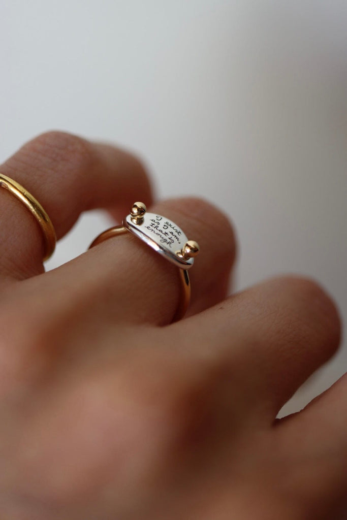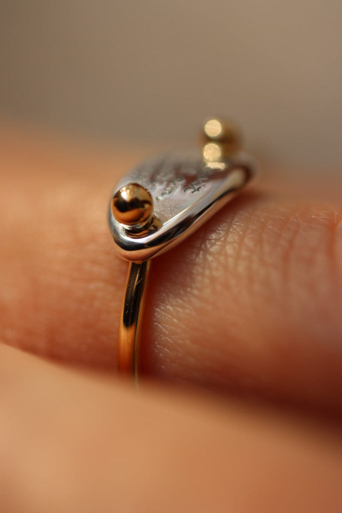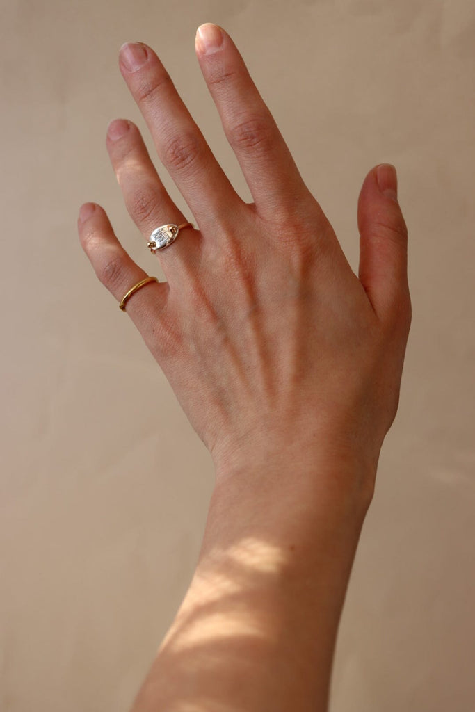 Anello con targhetta incisa – oro Fairtrade 18k e argento AgAIN silver 935