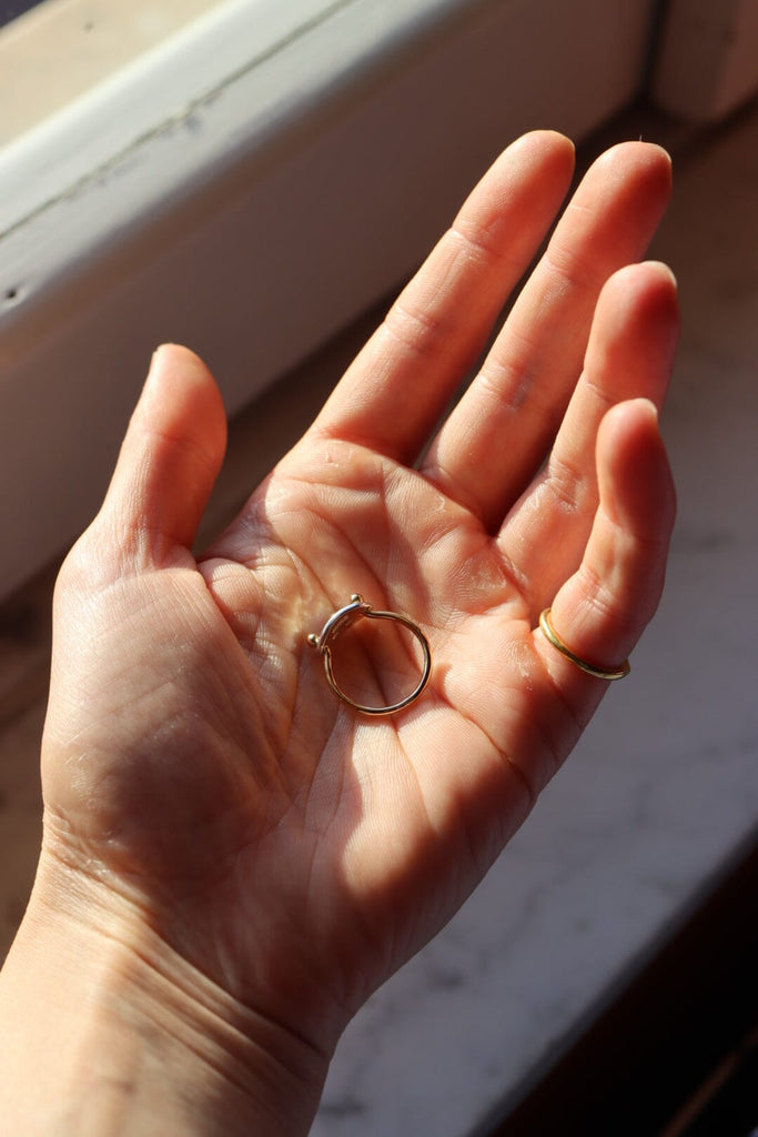 L'anello con targhetta appartiene alla mia storia dal 2016, cioè da quando ho introdotto l'oro Fairtrade in Italia, e da allora ne ho ripensato i più piccoli dettagli molteplici volte.