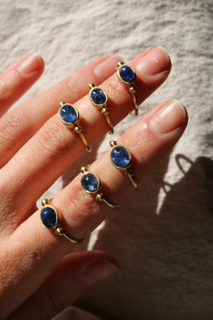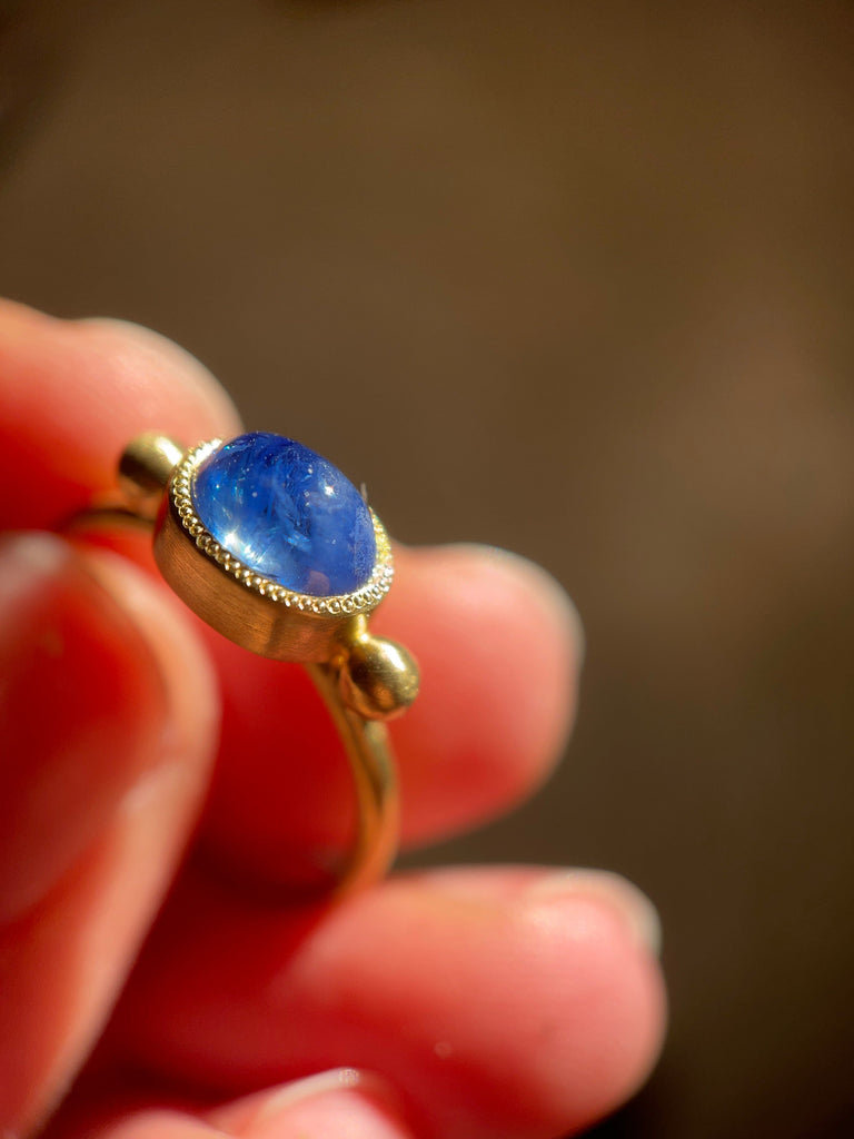 Questo Filo d'oro antico custodirà uno zaffiro blu o un rubino rosa estratti e tagliati responsabilmente in Sri Lanka. I loro colori, dimensioni e proporzioni sono tutti diversi, ma un video che li ritrae è disponibile tra le foto e a questo link.