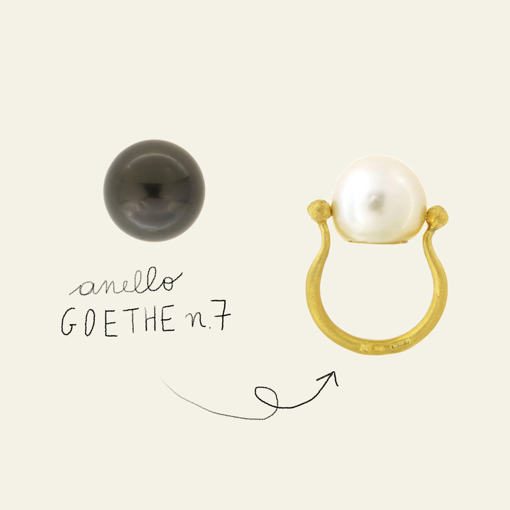 Una perla barocca esuberante che custodisce, incise su una piastrina nascosta, un verso di Goethe: