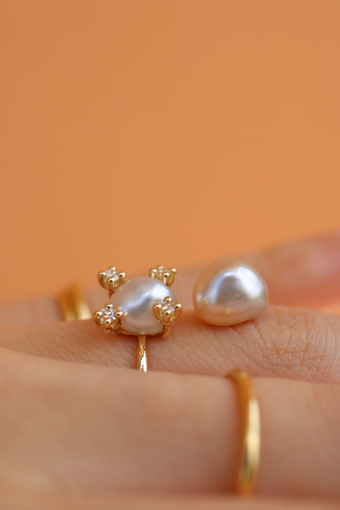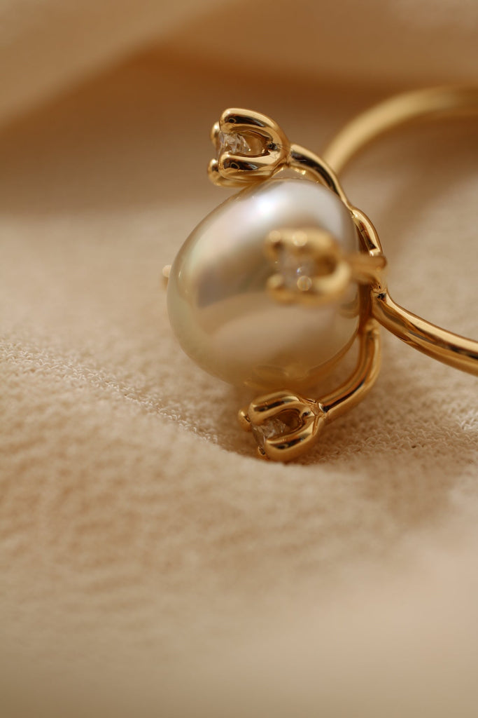 Oro certificato Fairtrade 18k, quattro diamanti Canadamark melee da 2 mm GH-VS e una perla keshi di Tahiti da coltura sostenibile di circa 8,9 x 8 mm.