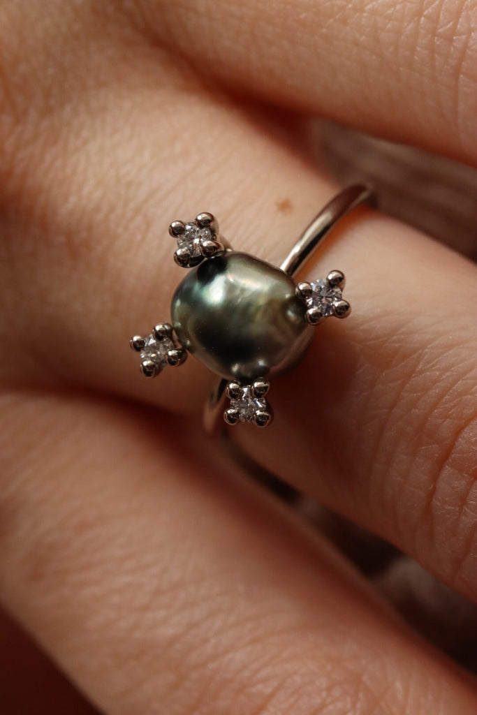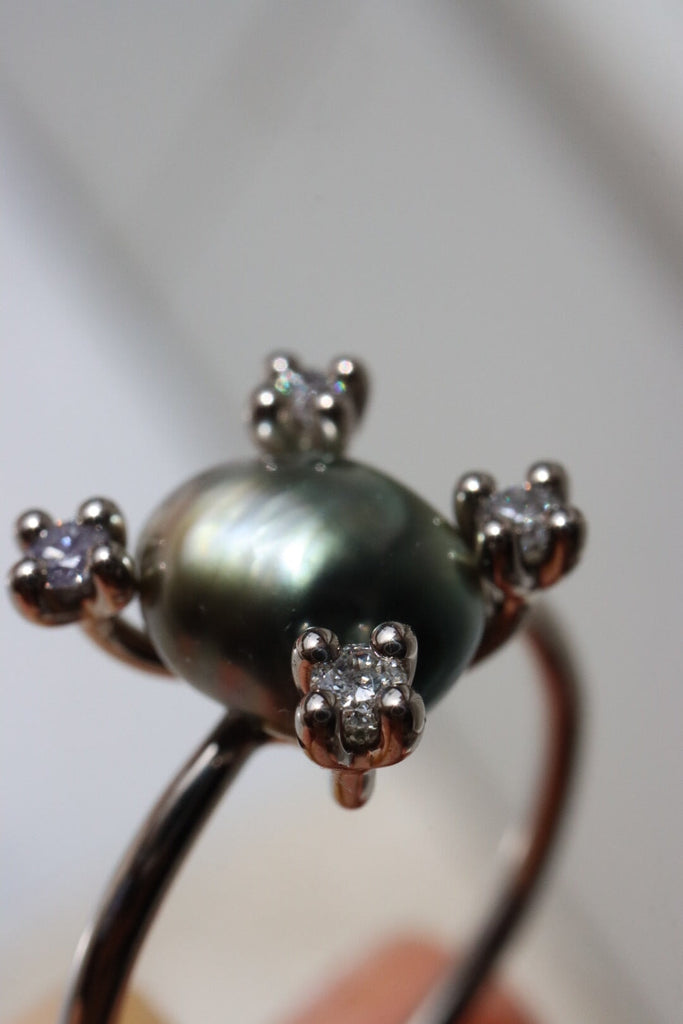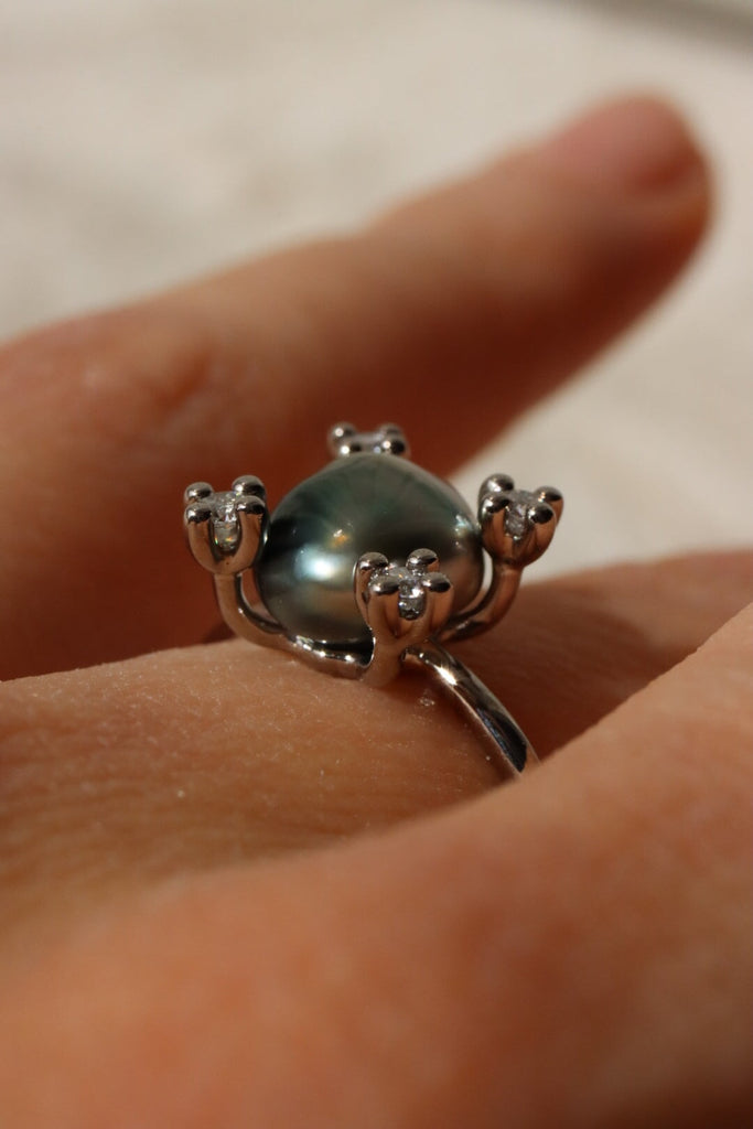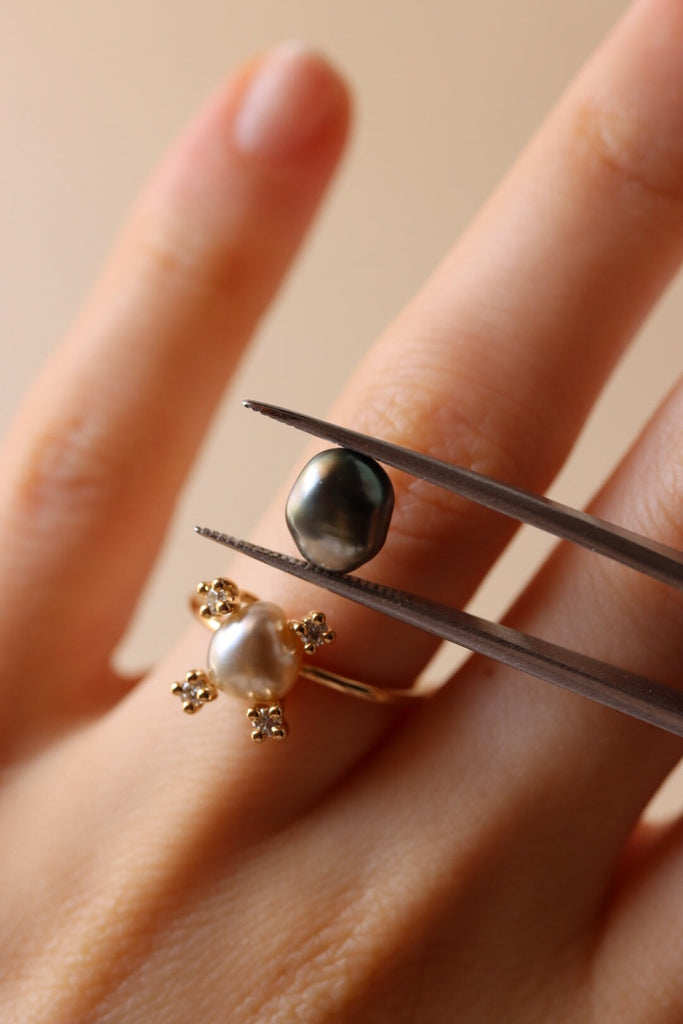 Questo esemplare, alla fine realizzato in taglia 14, custodisce una perla keshi delle Fiji da coltura sostenibile di circa 8,6 mm.