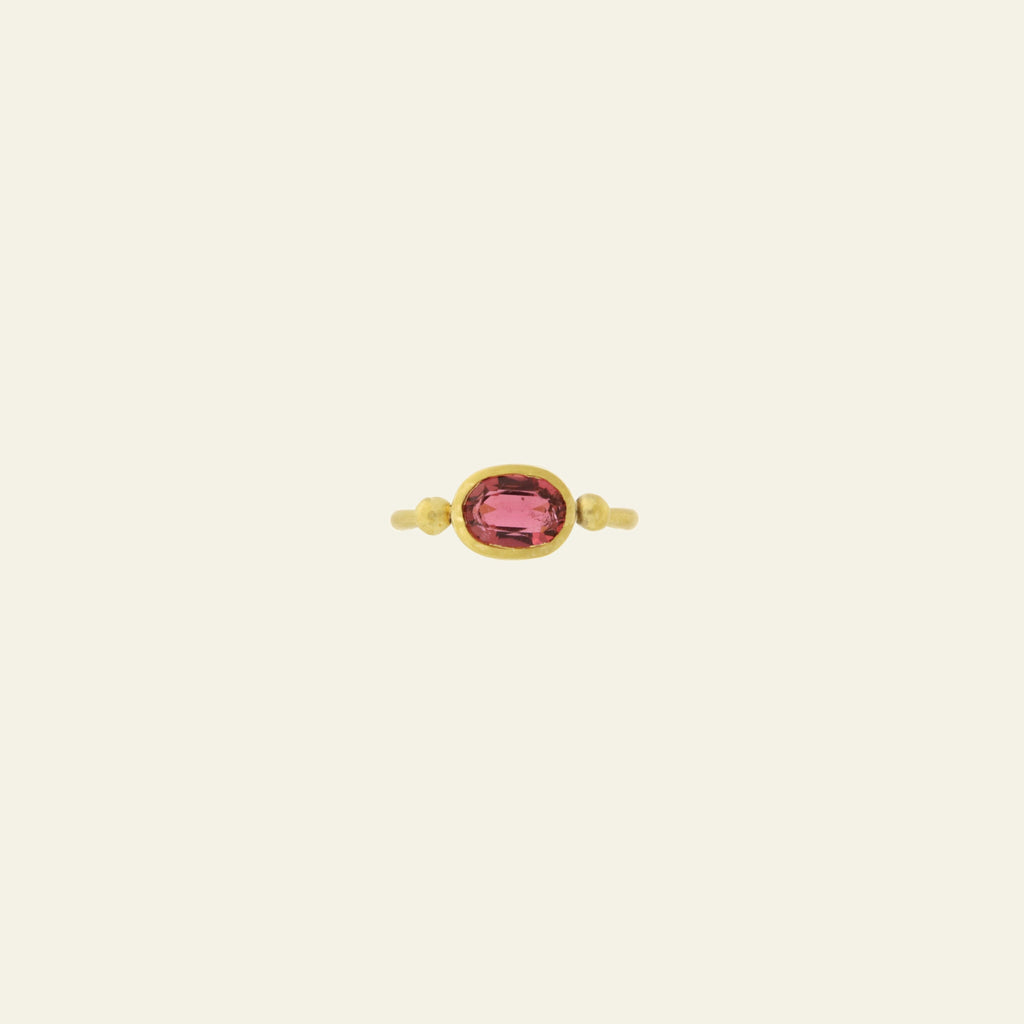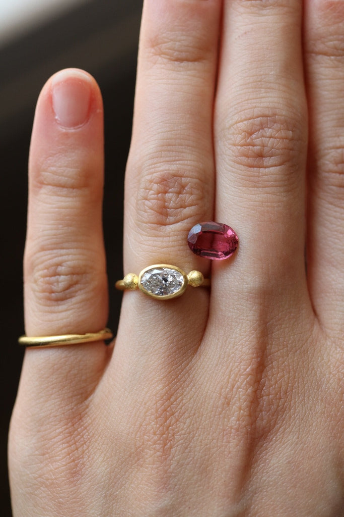 Questo esemplare porta una tormalina estratta responsabilmente in Malawi di 6,7 x 8,9 mm.
