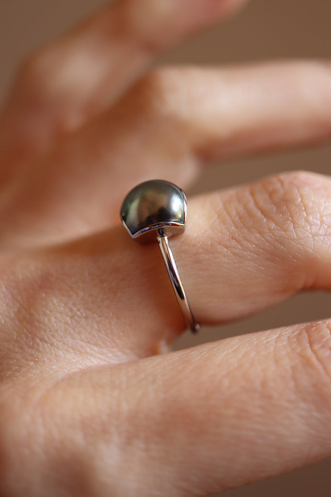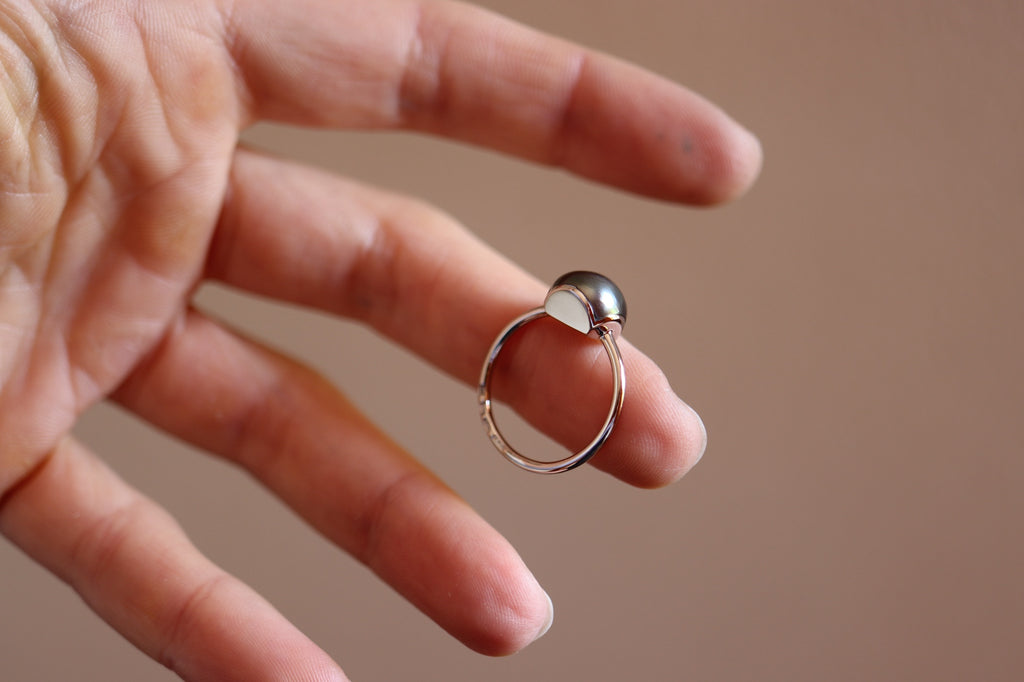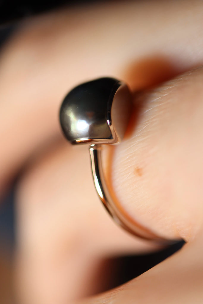 Nel progettare e realizzare un'idea ardita, mi sono spinta un po' lontano nell'alterare alcune perle barocche South Sea. L'idea di averle rovinate mi ha tormentata per mesi, finché non ho pensato di andare ancora più lontano, conferire loro delle facce come delle pietre e coprirle l'oro. Sono solo quelle che appaiono in foto e questa.