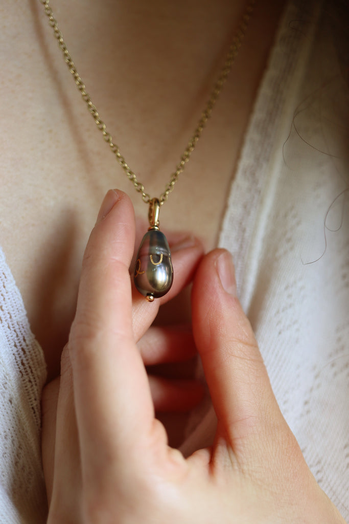 Ciondolo Parole d'oro esemplare N.2 con perla di Tahiti – Oro Fairtrade 18k