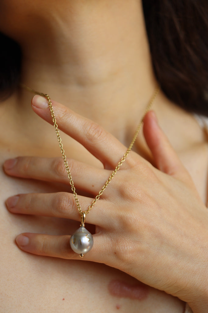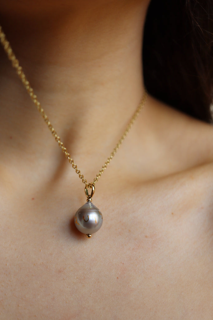 Ciondolo Parole d'oro esemplare N.4 con perla di Tahiti – Oro Fairtrade 18k