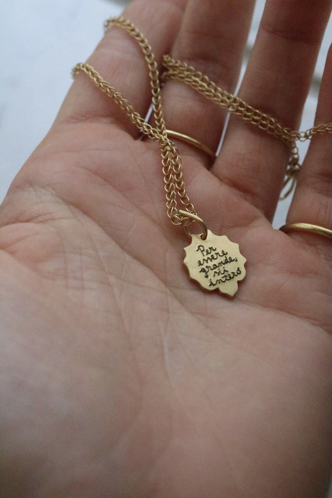 In oro certificato Fairtrade 22k (916) di colore giallo vivo, misura circa 16 x 14 mm.