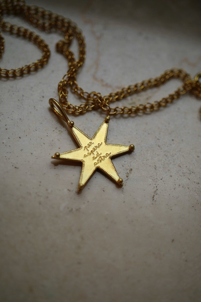 Per aspera ad astra misura circa 21 mm da punta a punta, senza considerare l'anellino goccia.
