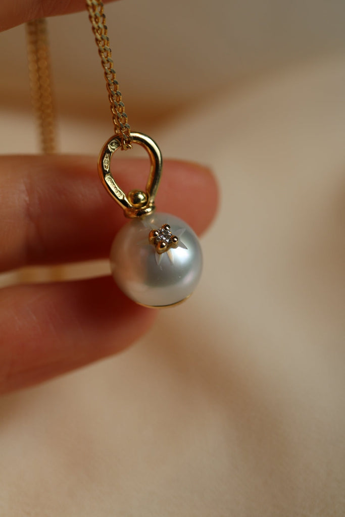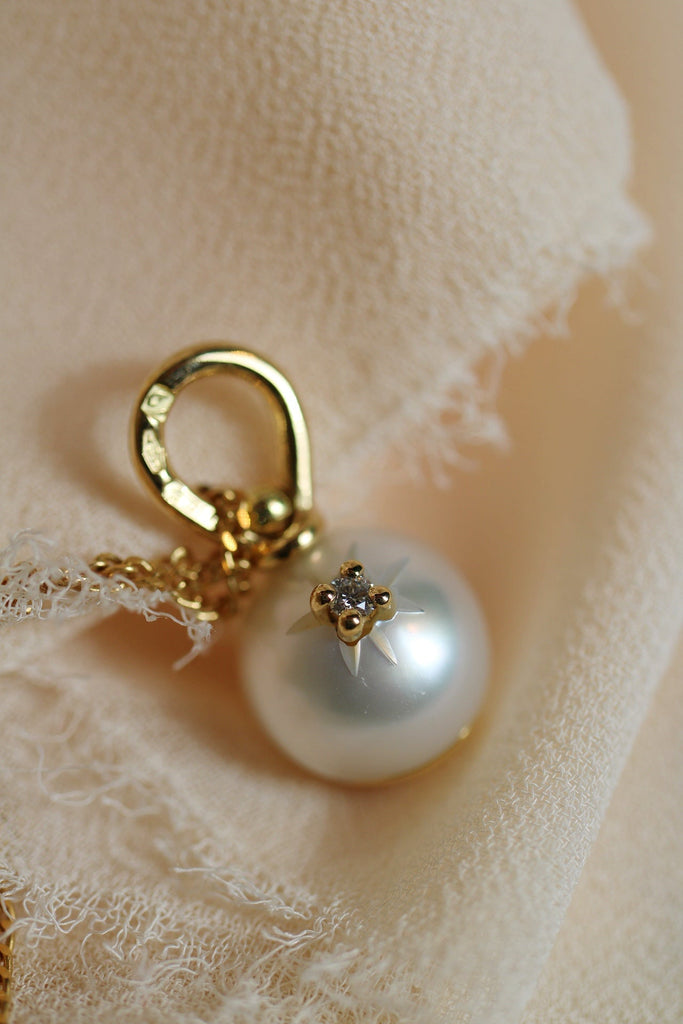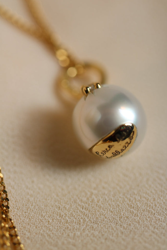 Una perla barocca South Sea, bianca e tondeggiante, custodisce il motto "Cerca la bellezza". Può girare su se stesa come un pianeta e ha una stella fissa: è un diamante che esce fuori da una stella incisa.