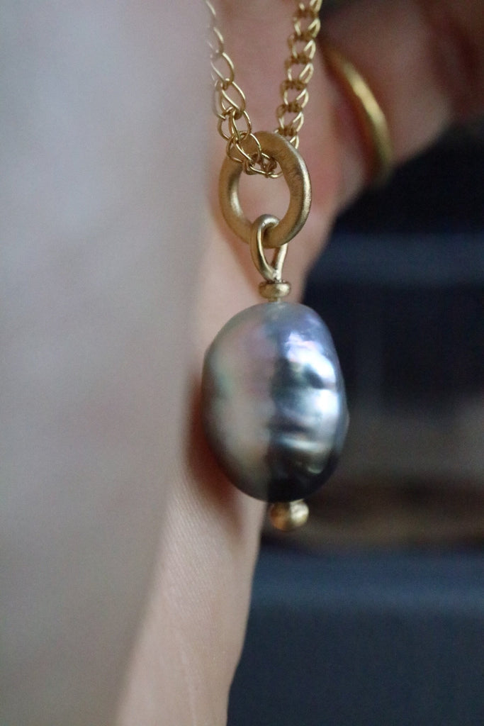 Perla barocca di Tahiti Marc'Harit e Oro Certificato Fairtrade 22k (916).