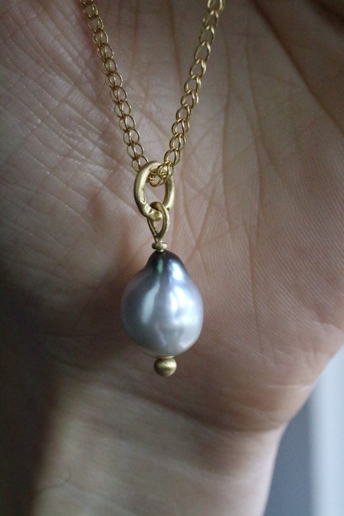 Perla barocca di Tahiti Marc'Harit e Oro Certificato Fairtrade 22k (916).
