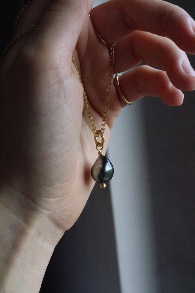 Perla keshi di Tahiti Marc'Harit e Oro Certificato Fairtrade 22k (916).
