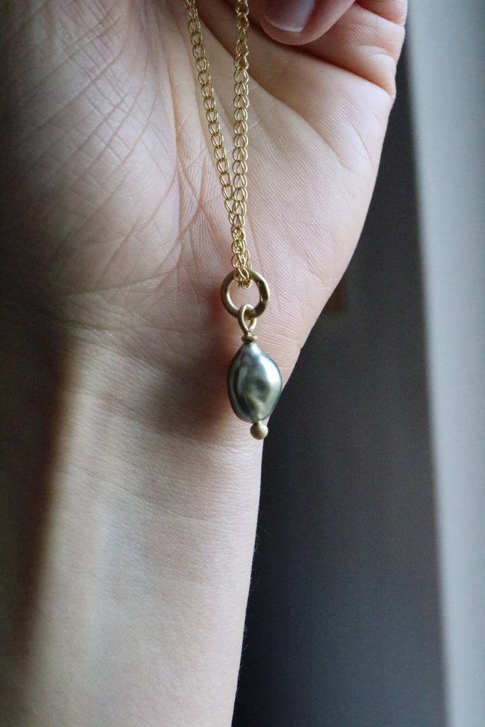 Perla keshi di Tahiti Marc'Harit e Oro Certificato Fairtrade 22k (916).