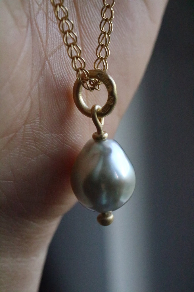 Perla barocca di Tahiti Marc'Harit e Oro Certificato Fairtrade 22k (916).