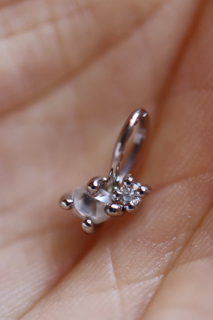 Due diamanti naturali dalla filiera Ocean Diamonds, uno tagliato e uno non tagliato, a esprimere la tensione che conferisce senso alla vita.