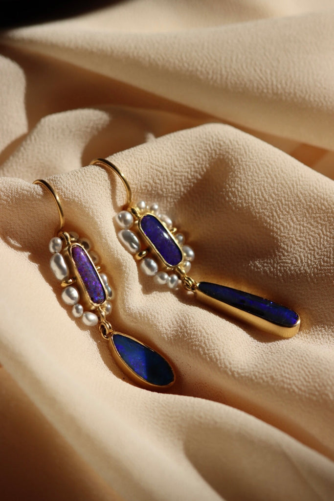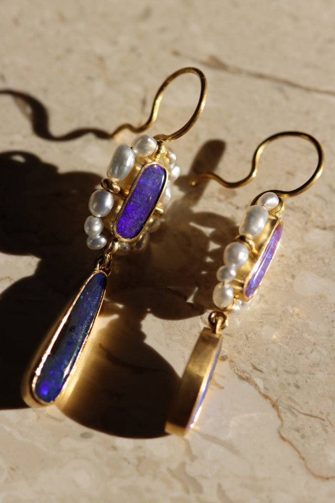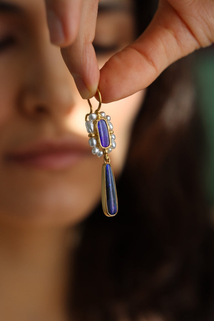 Gli orecchini Bizantini si ispirano all'omologo anello e, come lui, ringraziano Tyche per le keshi minute che li compongono. Sono sorretti dal gancio sinuoso, che ho creato per essere sicuro e semplice.