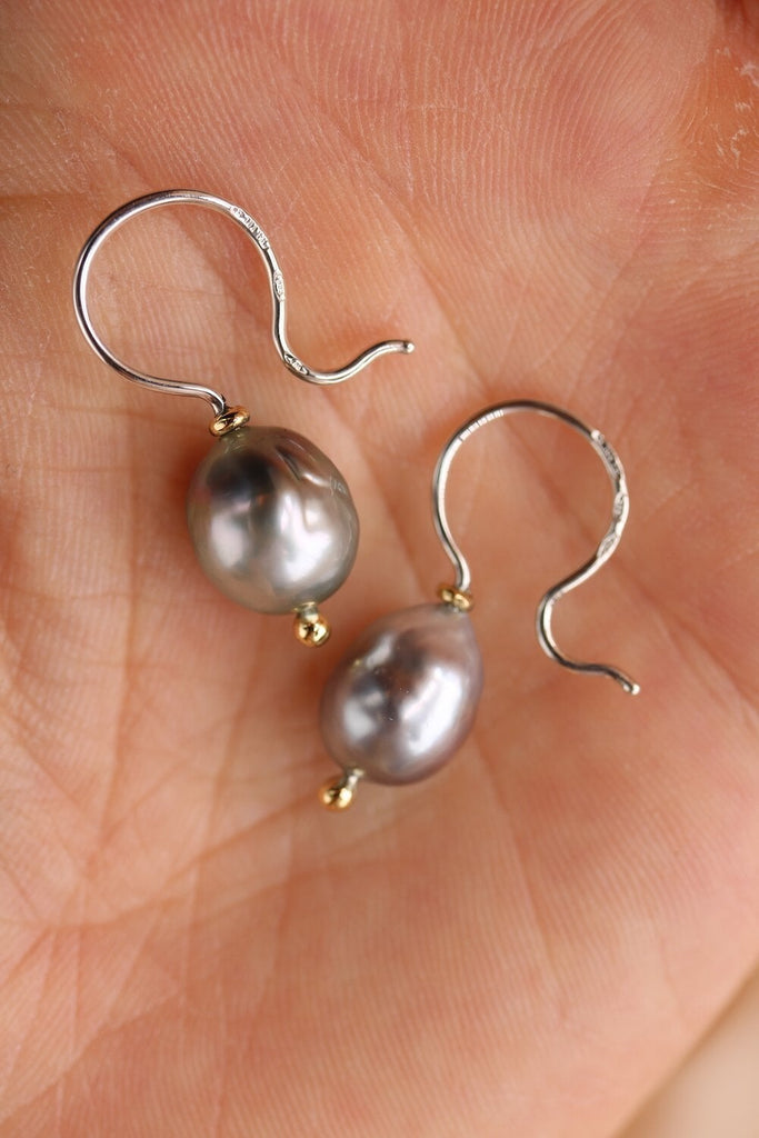 Perle barocche di Tahiti da coltura sostenibile di circa 9 mm sulla pancia.