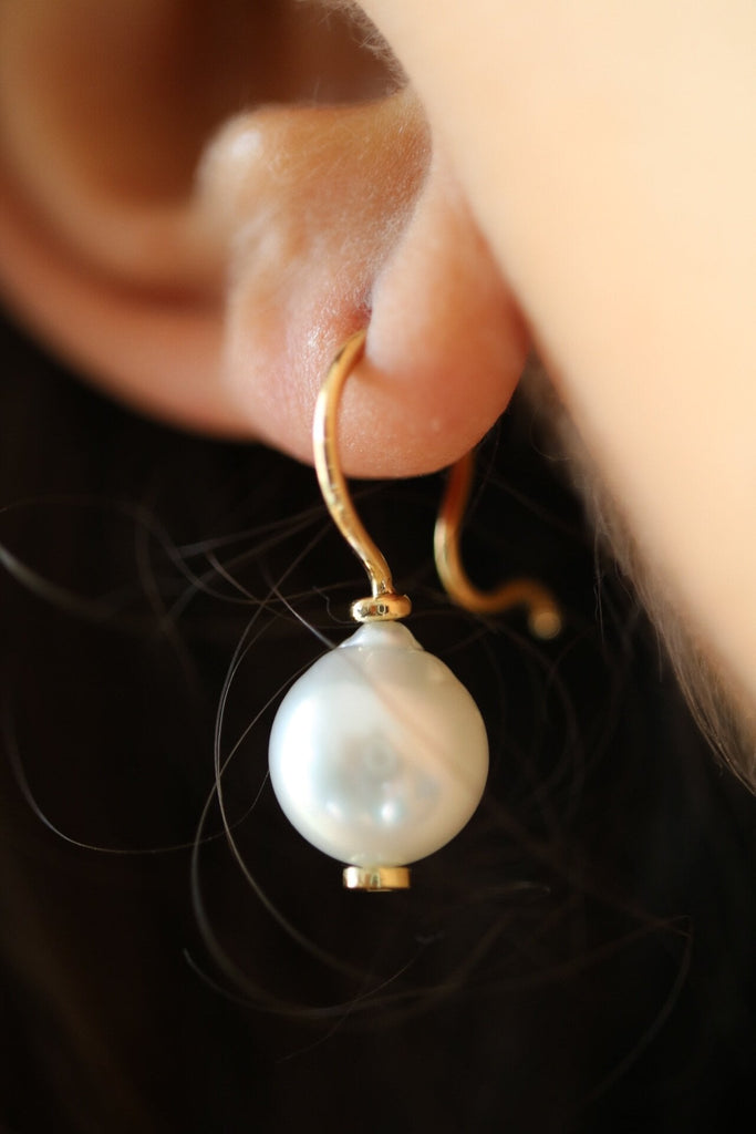 Perle barocche South Sea da coltura sostenibile di circa 10,5 mm sulla pancia.