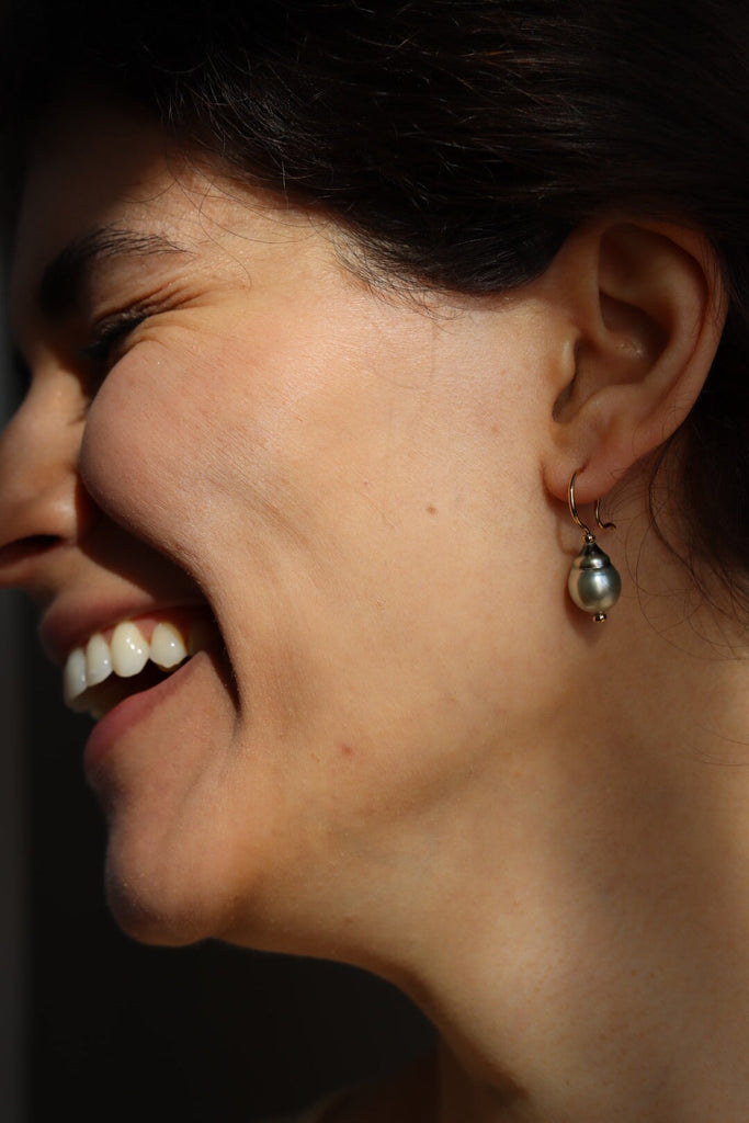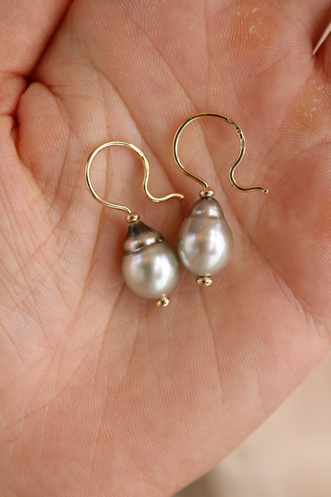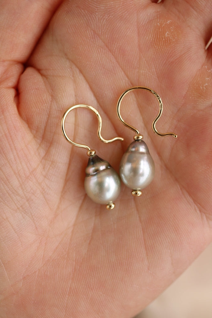 Perle barocche di Tahiti da coltura sostenibile di circa 10 mm sulla pancia.