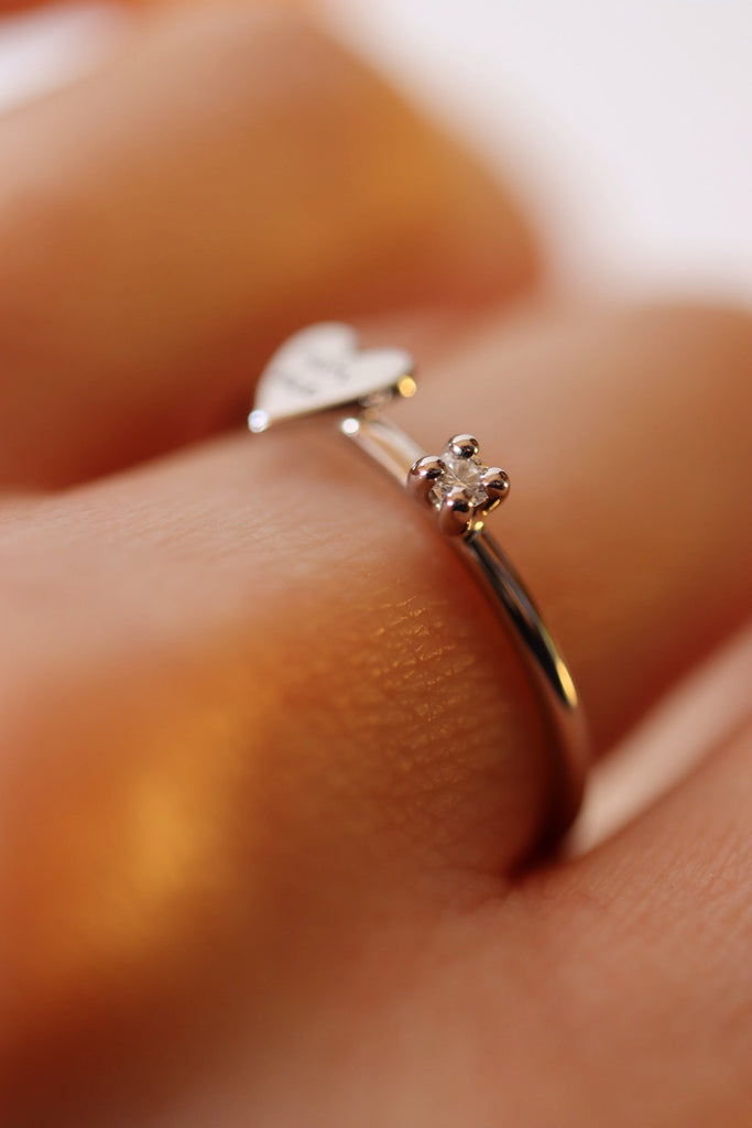 Anello Filo d'oro con Luce e Cuore di Parole con diamante di 2 mm – Oro Fairtrade 18k