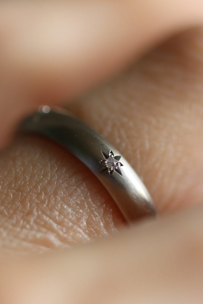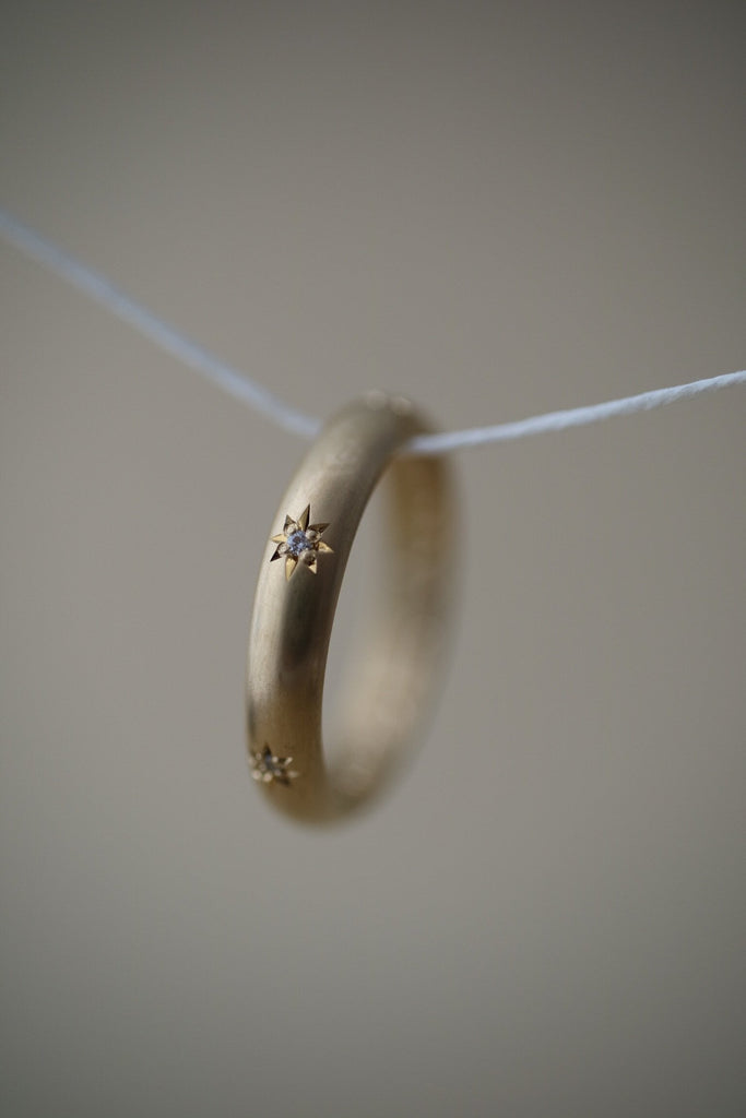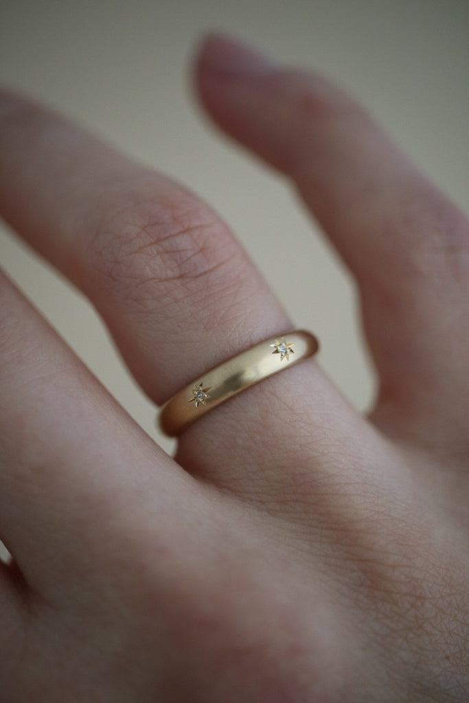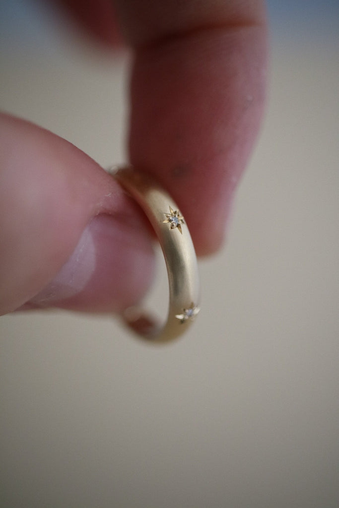 Questa versione di Nottetempo in oro Fairtrade 18k, misura circa 3,5 mm di altezza e contiene sei diamanti naturali da 1 mm - o anche di più o di meno, se preferisci.