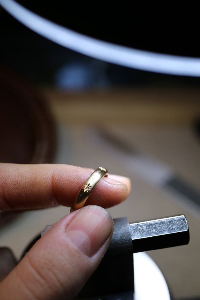 Potrai individuare la taglia giusta e chiedermi consiglio, mentre il materiale prezioso resterà riservato per te. Solo dopo, una volta definita insieme la misura, inizierò a lavorare all'anello.