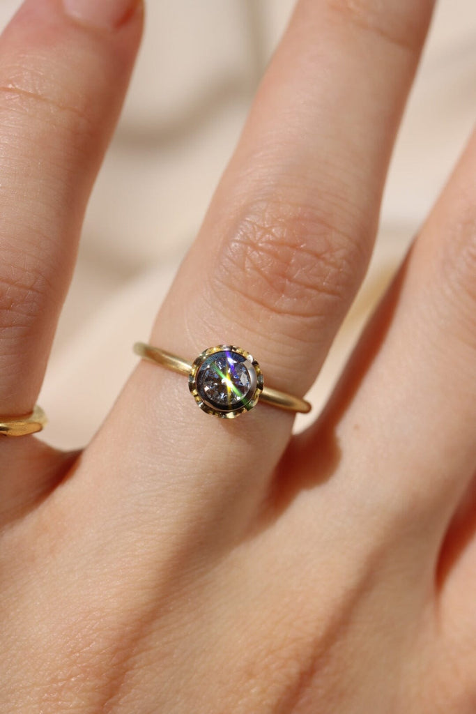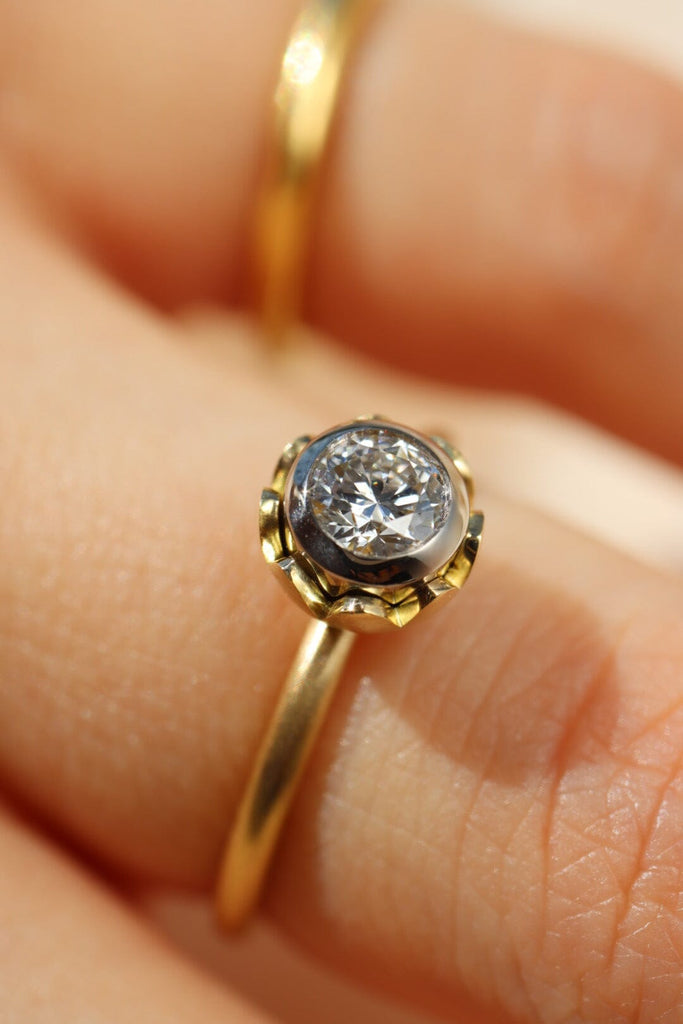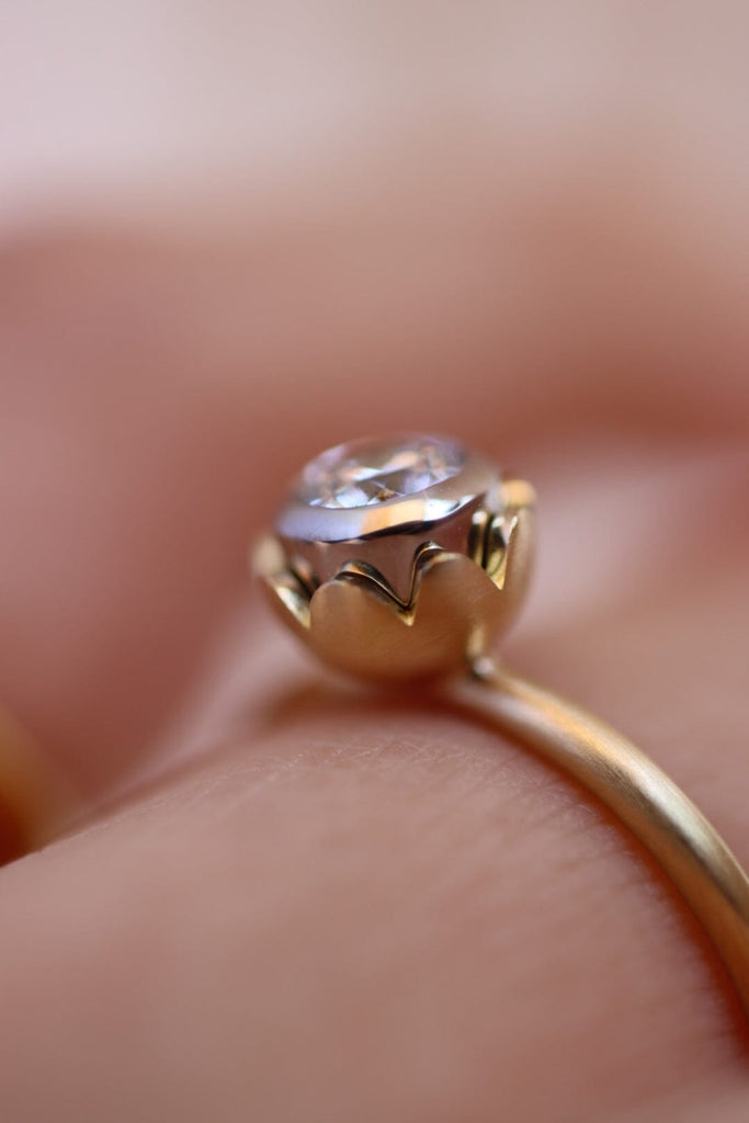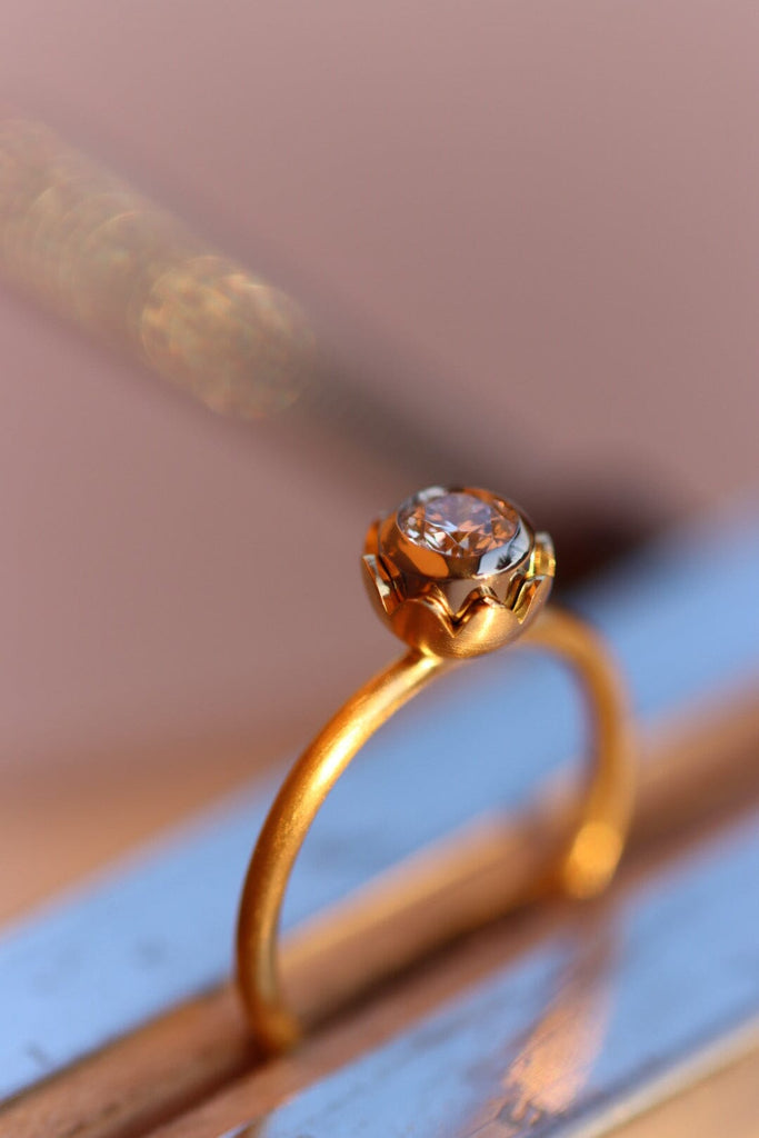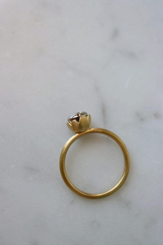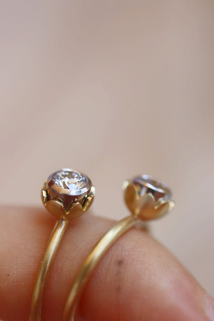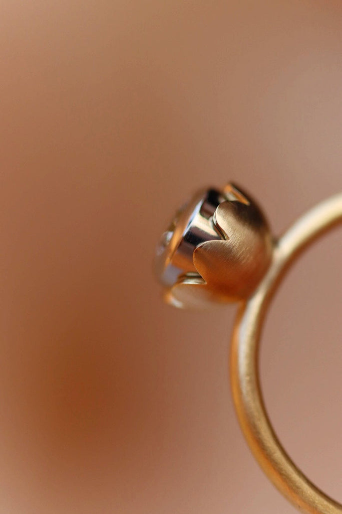 L'anello Ugo è un bocciolo dal quale nasce un diamante, ma anche il dolce ricordo dei tovaglioli di velina della pasticceria del cuore.