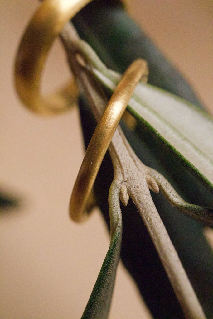 L'oro 22k, grazie alla maggiore percentuale di oro Fairtrade puro, è più morbido del classico 18k: grazie al tempo e agli oli della pelle prenderà una finitura unica e riconducibile a chi indossa l'anello. Sarà un satinato brillante e vivo.