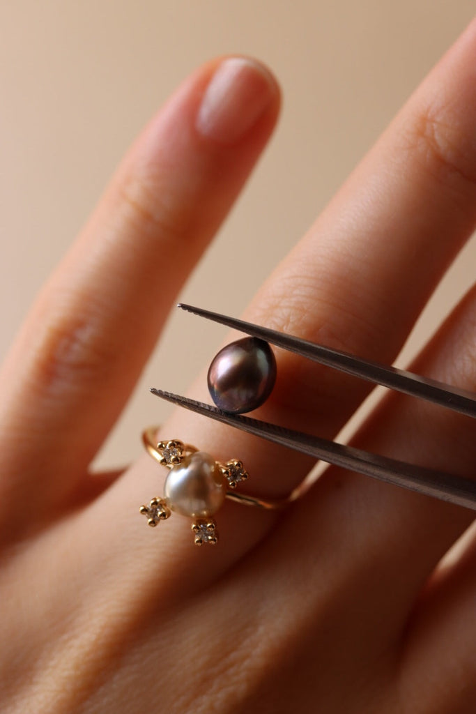 Questo esemplare custodirà una perla keshi delle Fiji da coltura sostenibile di circa 8,7 mm.