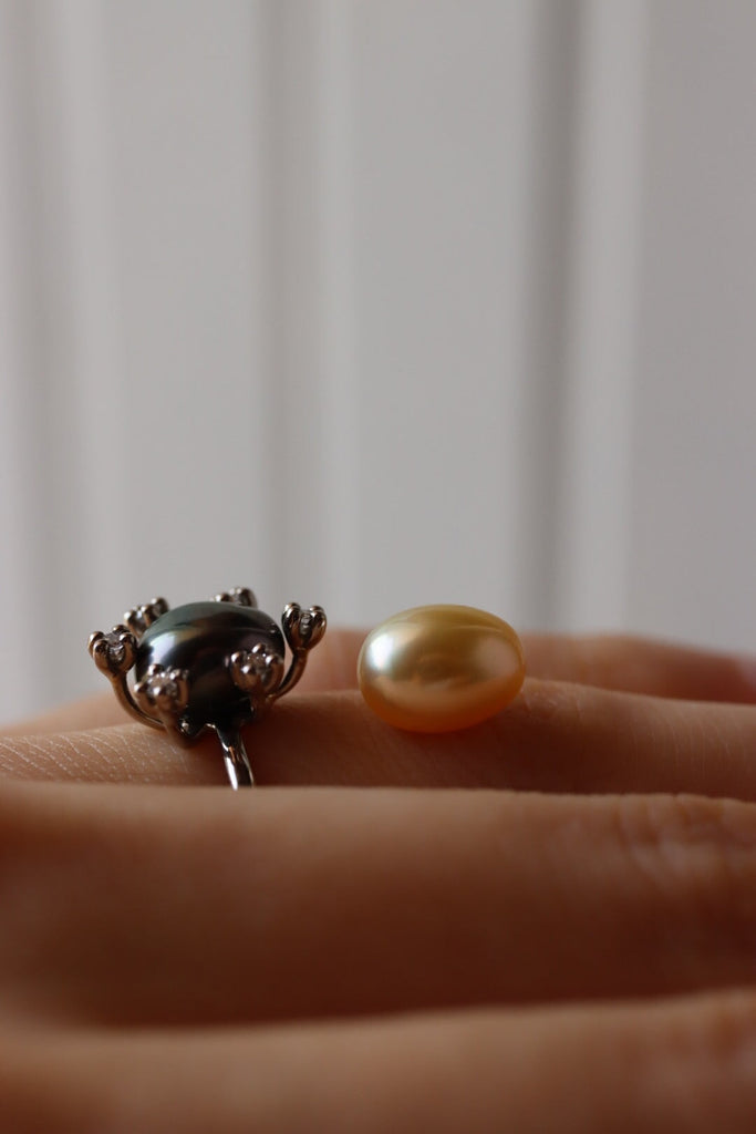 Questo esemplare costudirà una perla keshi South Sea da coltura sostenibile di circa 10,3 mm.