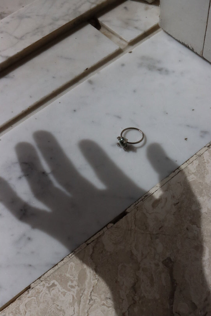 [In foto appare un anelo Non so che I in oro Fairtrade 18k di colore bianco naturale.]