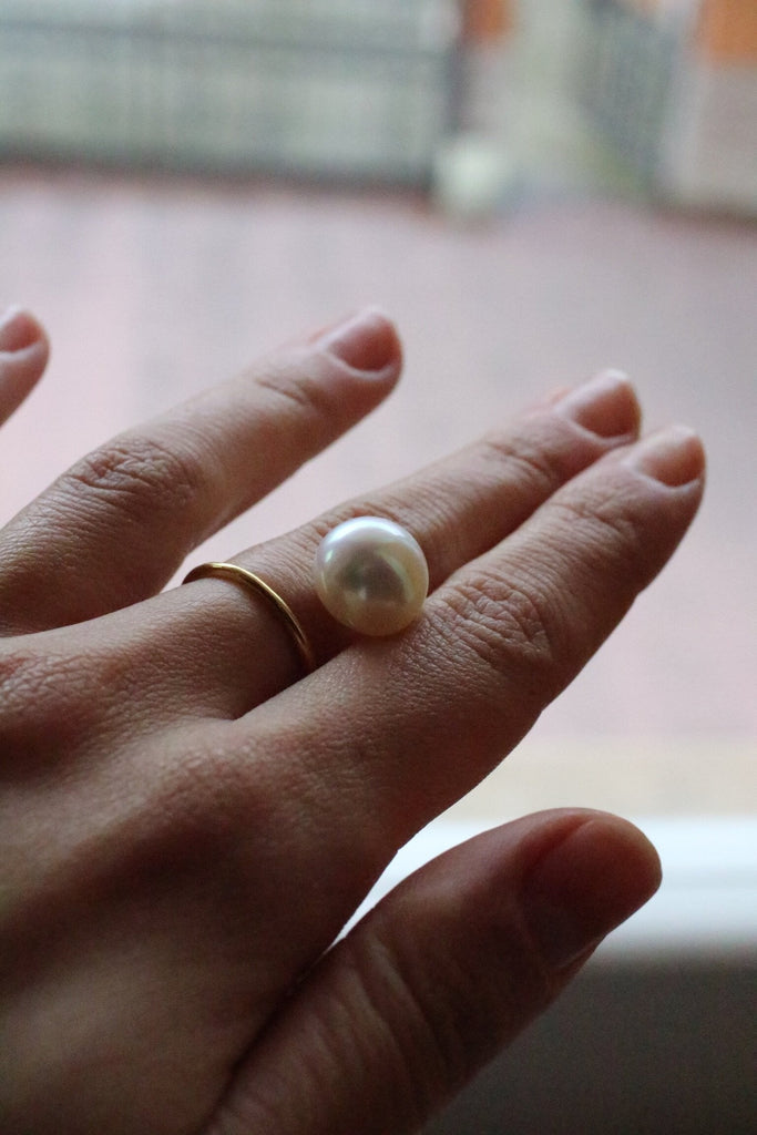 Si chiama " Ancora ispirato a Goethe " poiché diverso dagli anelli precedenti. Le ultime perle che ho trovato sono troppo piccole per l'anello Goethe, ma comunque troppo grandi per la prima versione dell'anello Ispirato: è stato necessario cambiare le proporzioni del modello.