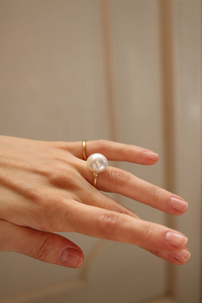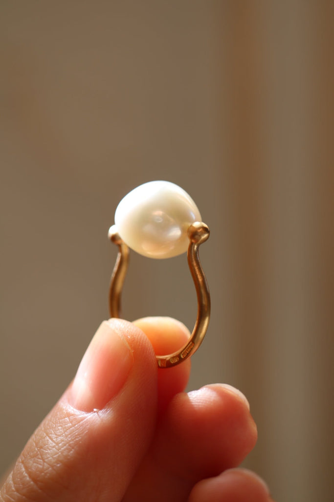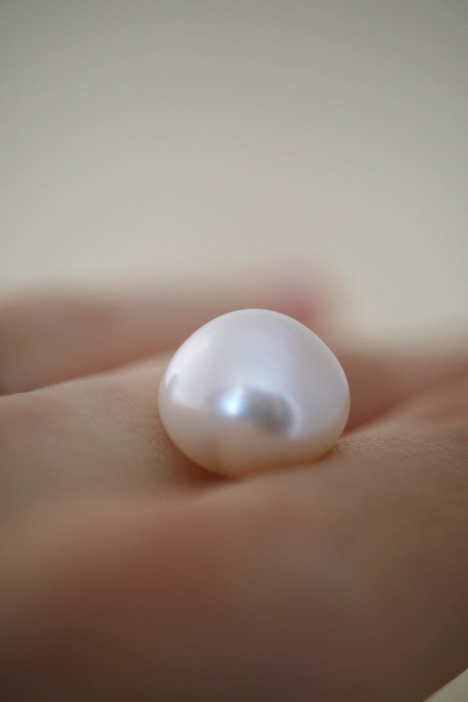 Perla barocca South Sea da coltura sostenibile larga circa 14 mm e dalla forma un po' a bottone.