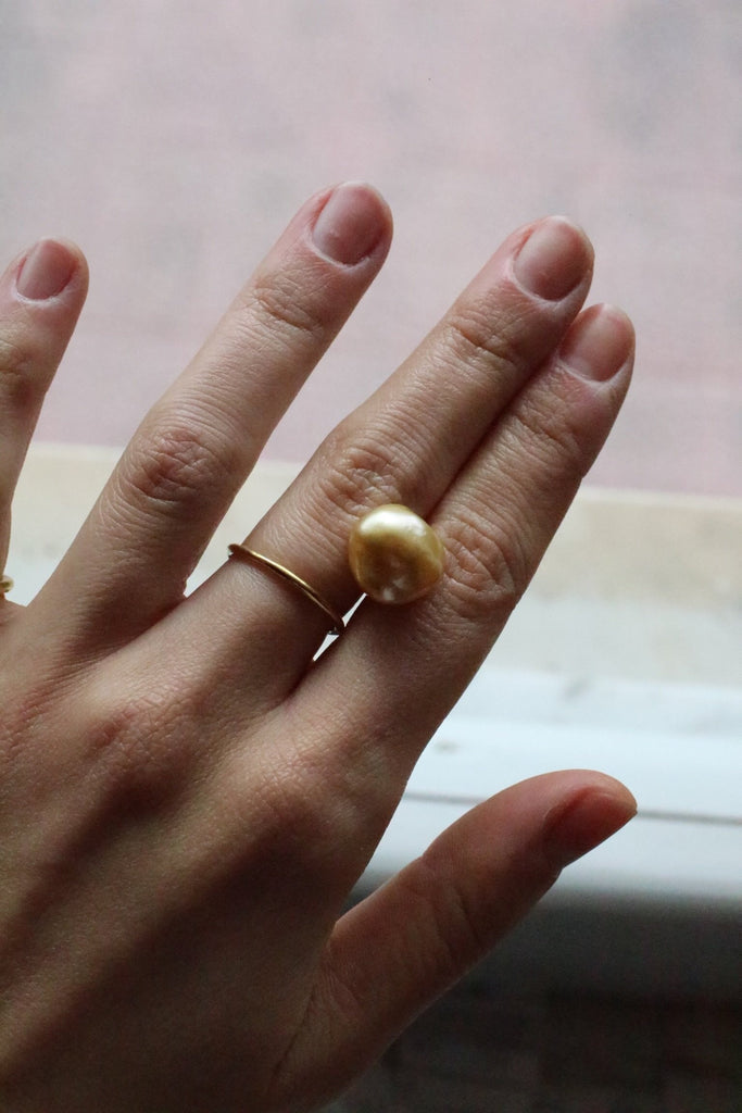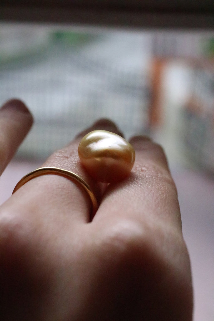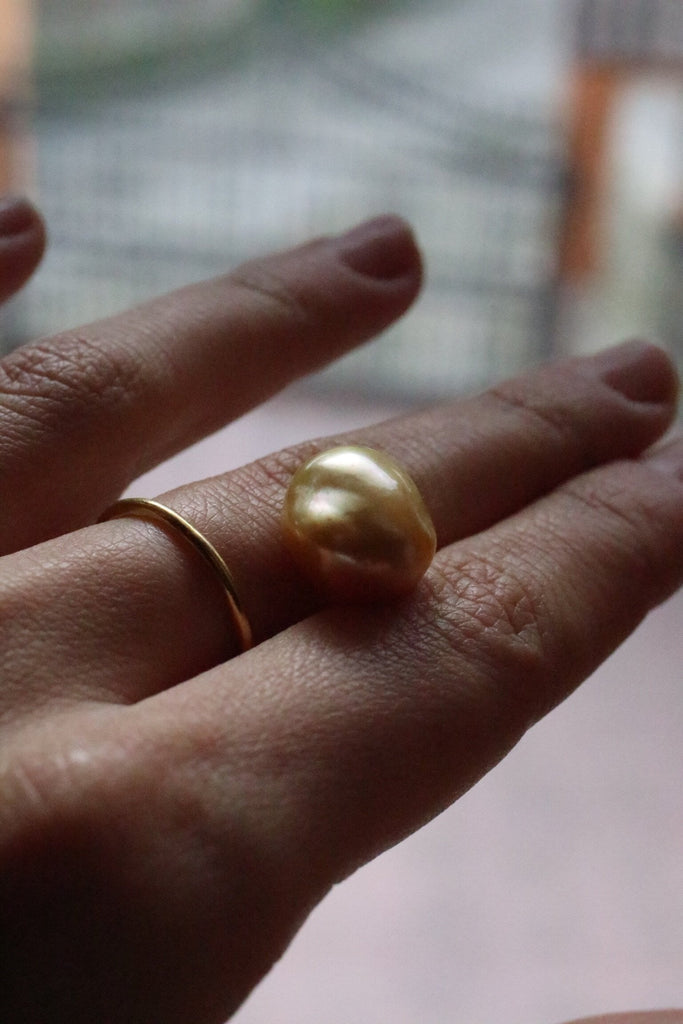 Questo esemplare sarà in Oro Certificato Fairtrade 22k e conterrà una perla barocca South Sea dorata di 13 mm.