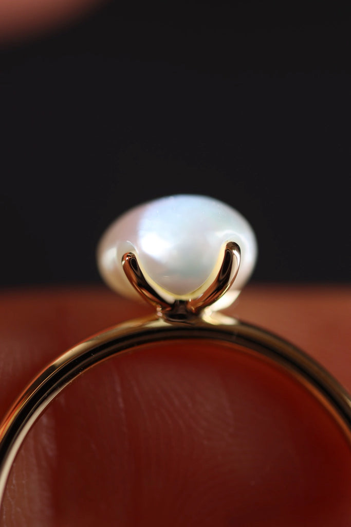 Il ritratto esatto di un momento: una perla che sta per sprofondare nell'oro e l'oro che sta per avviluppare una perla.
