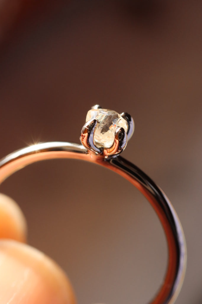 Anello Filo d'oro con Tesoro con diamante naturale non tagliato esemplare N. 2 – Oro Fairtrade 18k