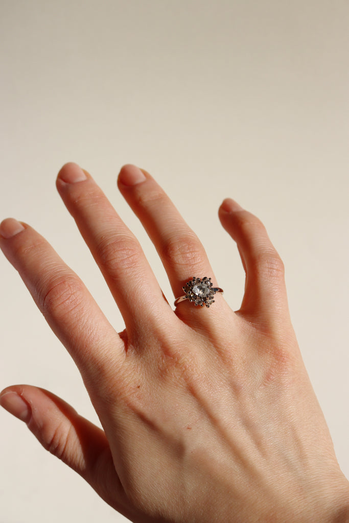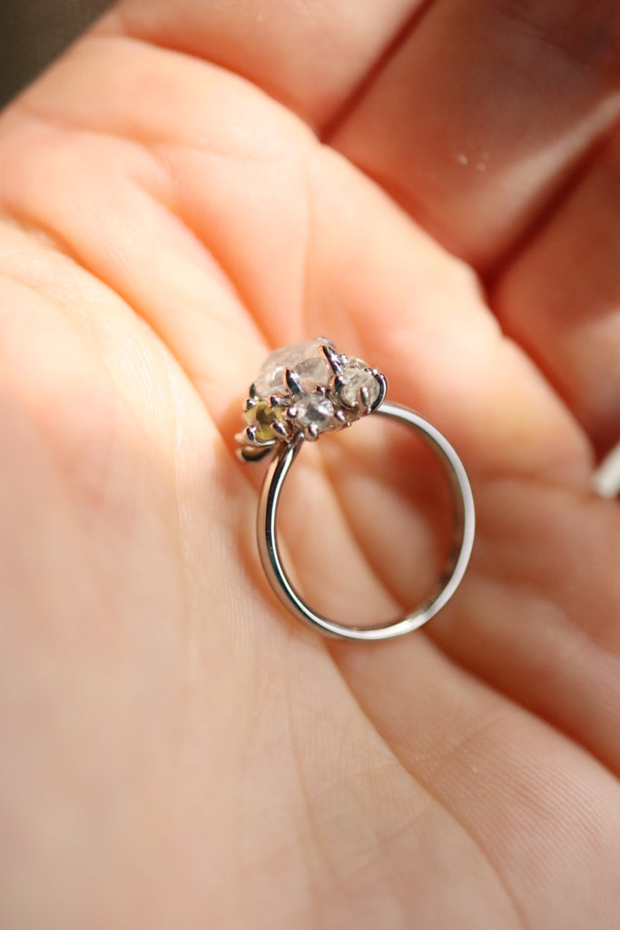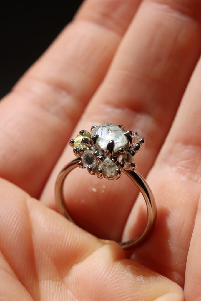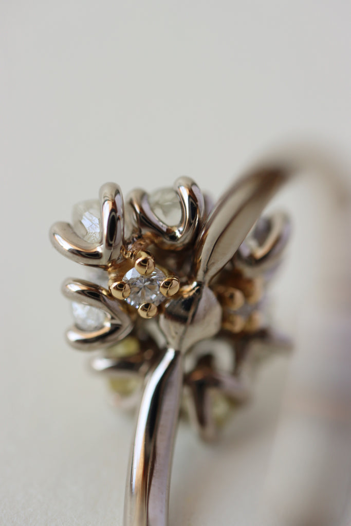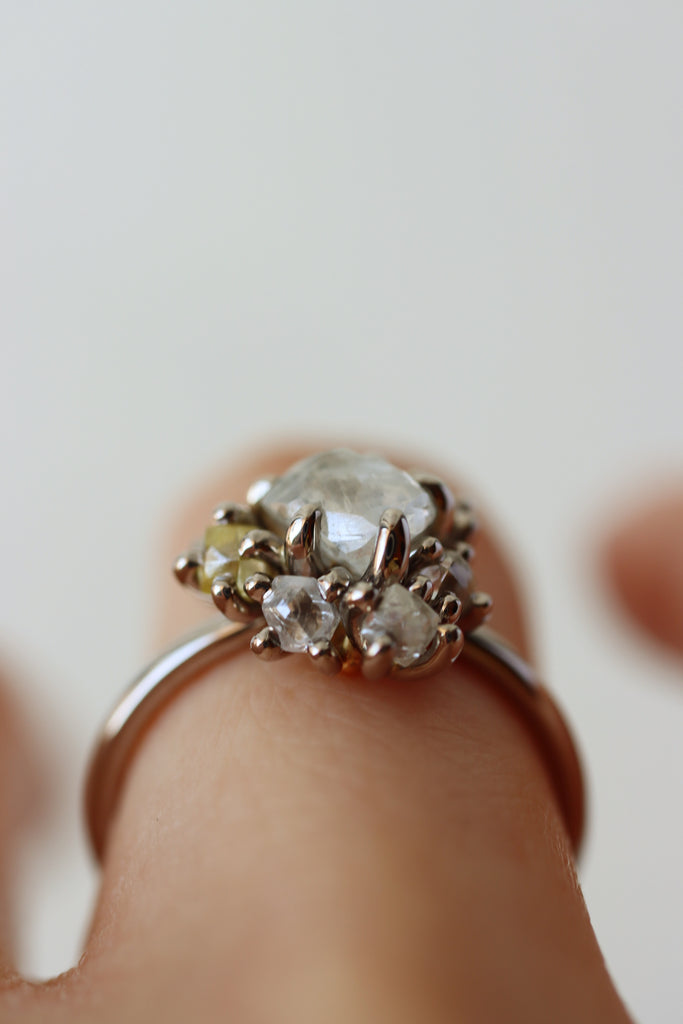 Questo esemplare è stato realizzato nella taglia 13 italiana (53 del misuratore), ma sarà possibile crearne degli altri, coincidenti nell'essenza ma diversi e unici, a riflettere la forma dei diamanti scelti. Scrivimi.