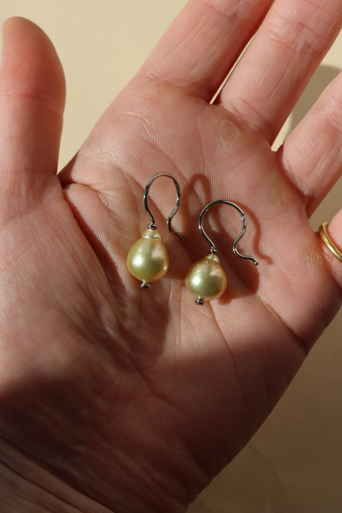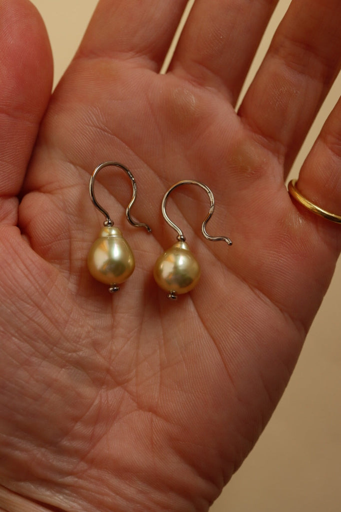 Una coppia di perle barocche South Sea da coltura sostenibile che misurano circa 10,5 mm sulla pancia, cioè in larghezza.