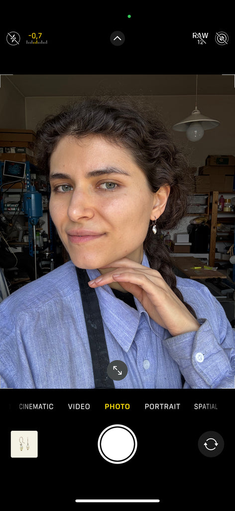 Un paio di orecchini Cielo che si sono spinti un po' più in alto, fino a rubare due stelle. Sono sorretti dal famoso gancio sinuoso, che ho creato per essere sicuro e semplice.