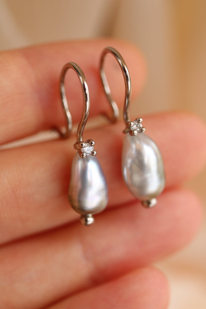 Un paio di orecchini Cielo che si sono spinti un po' più in alto, fino a rubare due stelle. Sono sorretti dal famoso gancio sinuoso, che ho creato per essere sicuro e semplice.