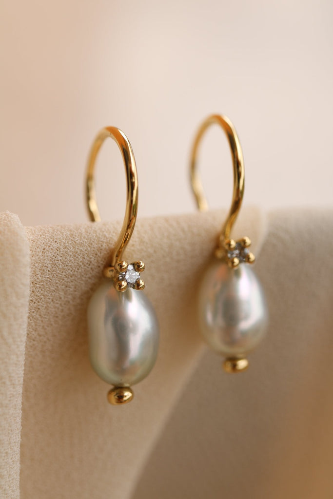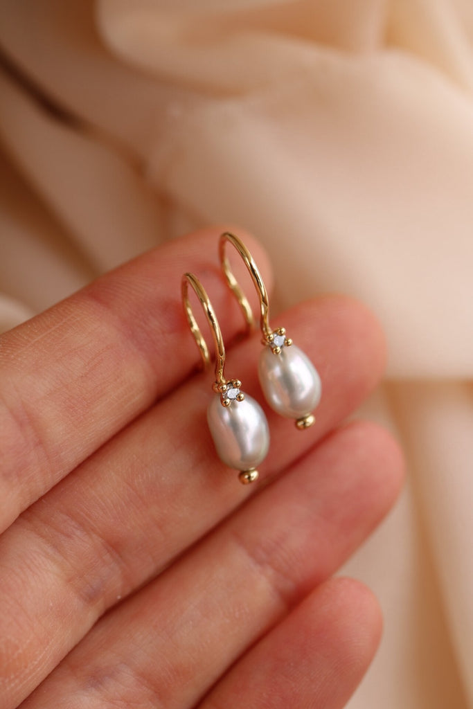 Un paio di orecchini Cielo che si sono spinti un po' più in alto, fino a rubare due stelle. Sono sorretti dal famoso gancio sinuoso, che ho creato per essere sicuro e semplice.